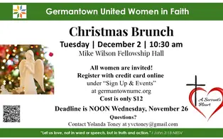 Tuesday, December 2 at 10:30 am Mike Wilson Fellowship HallAll women are invited! Cost is only $12Deadline is NOON Wednesday, November 26